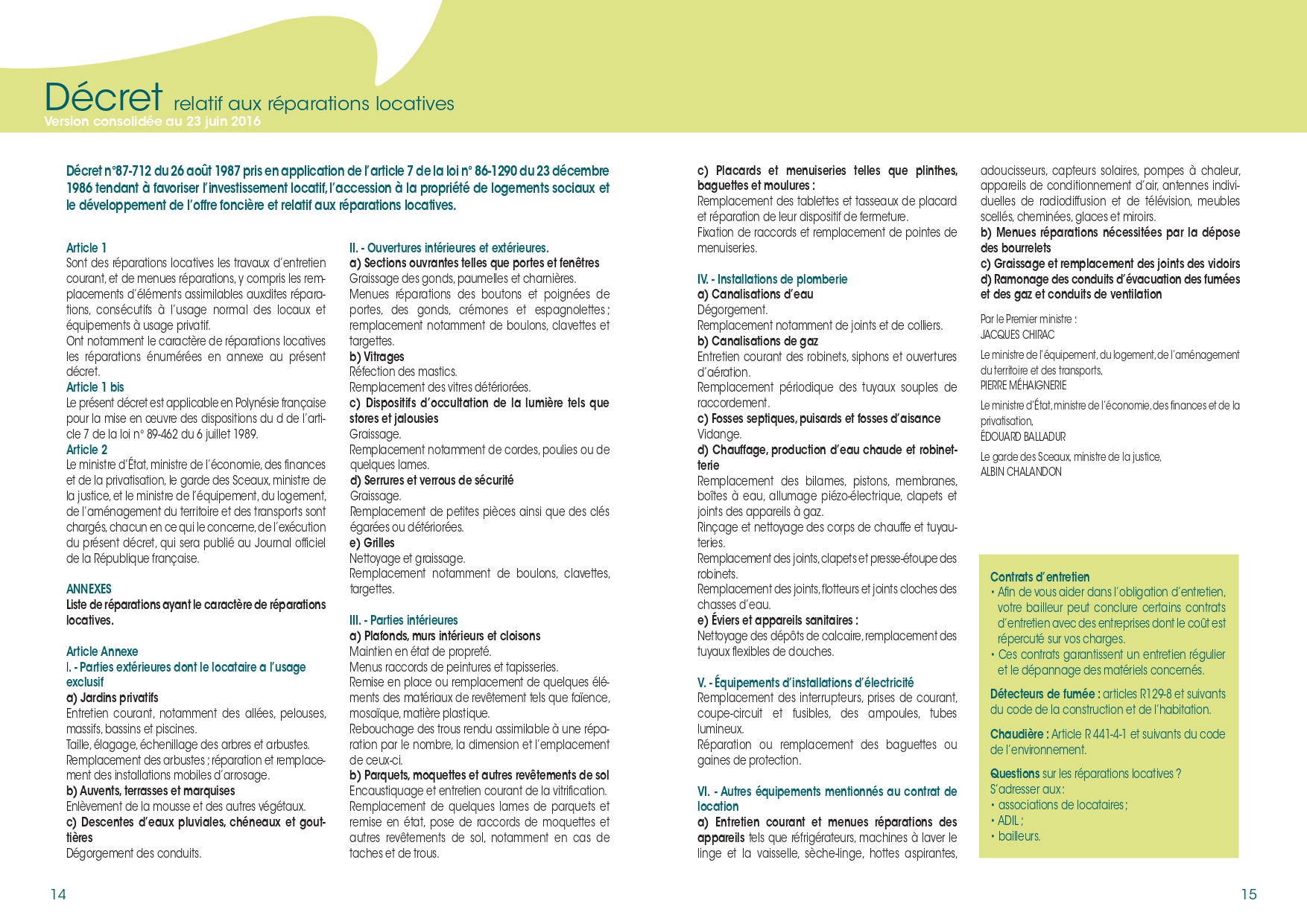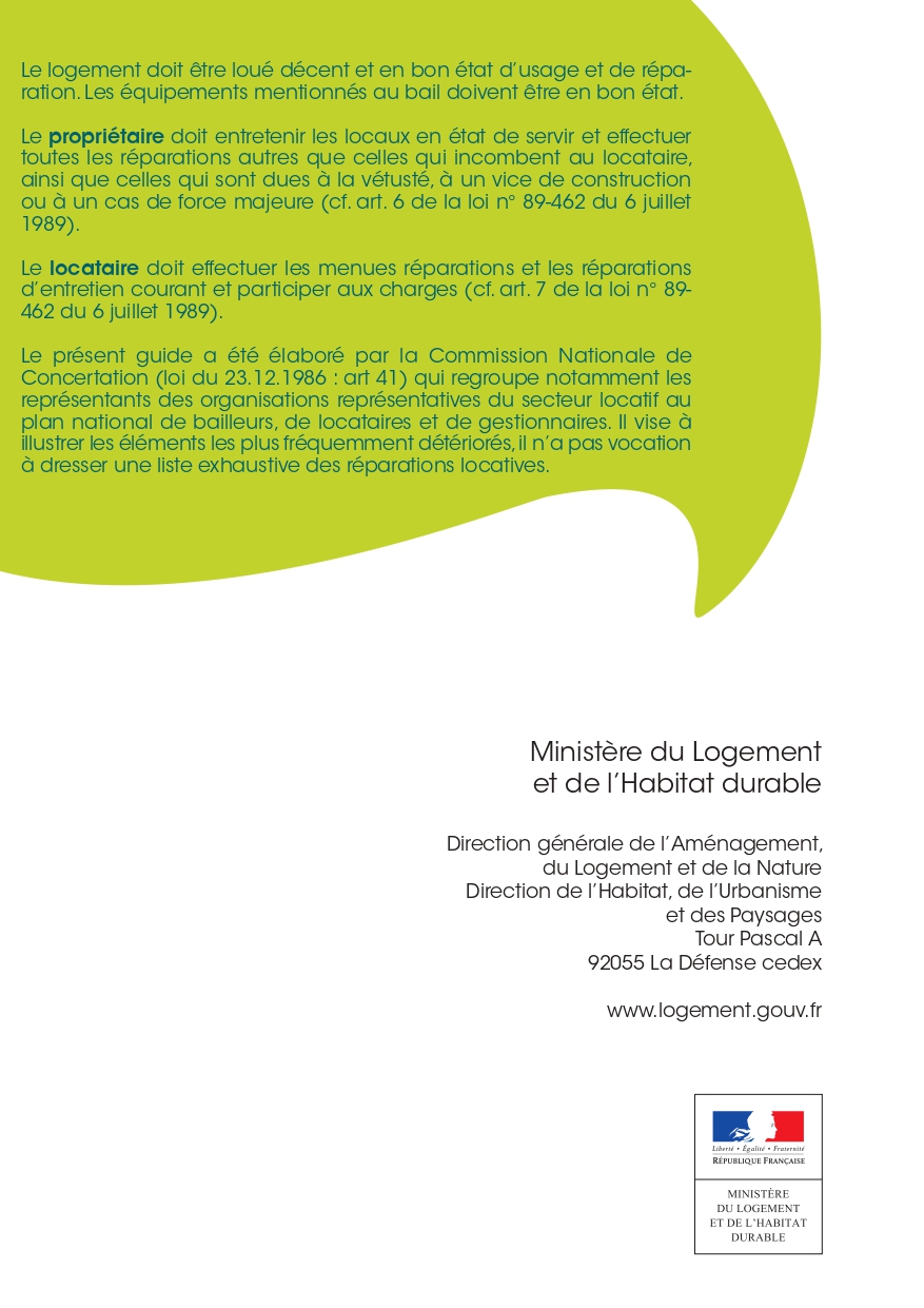 Retrouvez le guide d'information des réparations locatives"locataires/propriétaires" ci-dessous